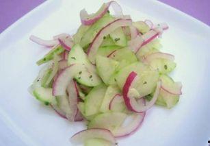 2. 洋葱拌黄瓜:将洋葱切丝,黄瓜切片。将洋葱丝和黄瓜片放入碗中,加入适量的盐、醋、蒜末、辣椒油等调料,拌匀即可。